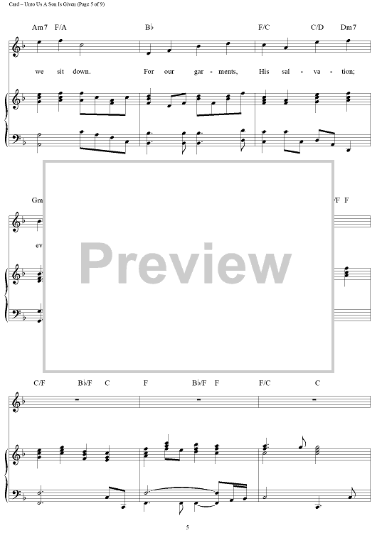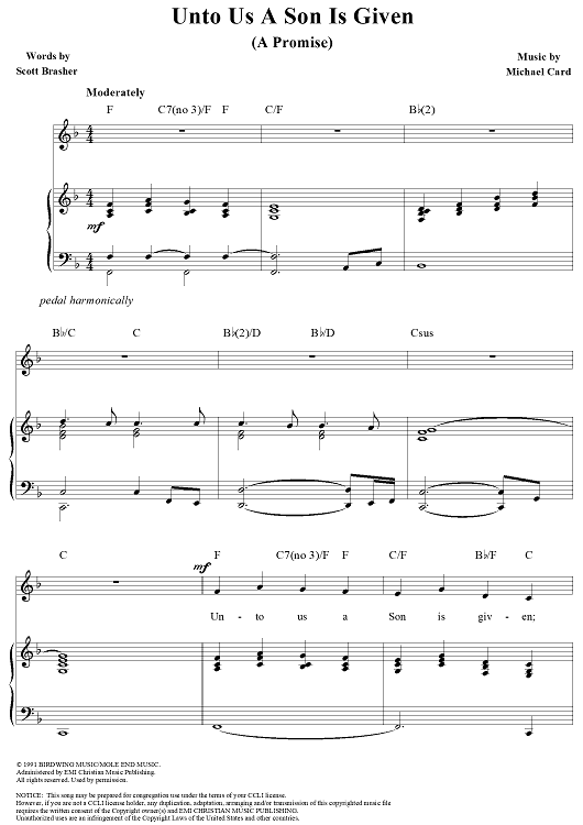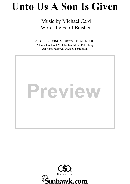 Digital Sheet Music for Unto Us A Son Is Given by Michael Card, Scott Brasher scored for Piano/Vocal/Chords; id:273279
