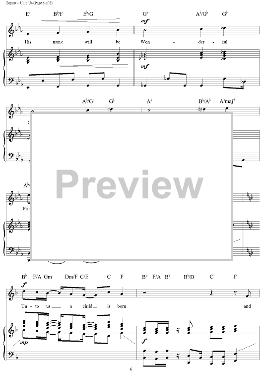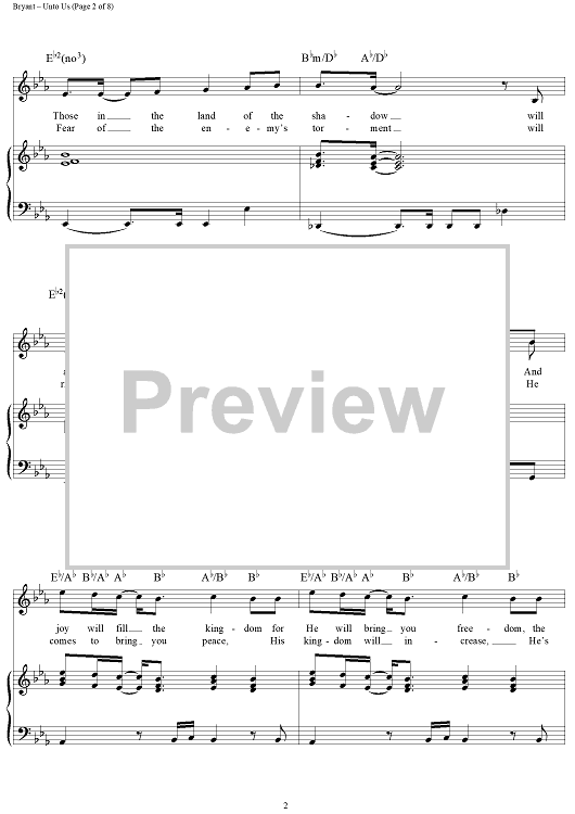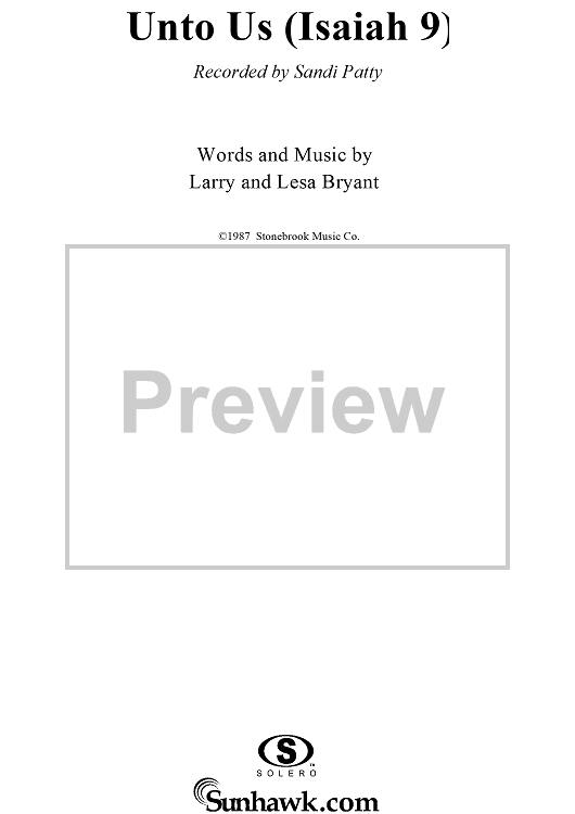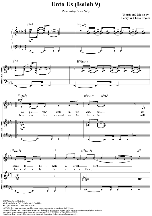 Digital Sheet Music for Unto Us (Isaiah 9) by Larry Bryant, Lesa Bryant, Sandi Patty scored for Piano/Vocal/Chords; id:113826