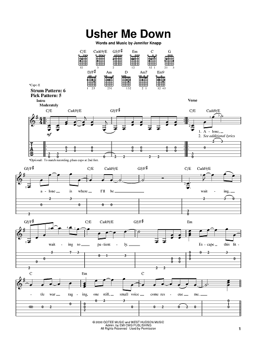Digital Sheet Music for Usher Me Down by Jennifer Knapp scored for Easy Guitar Tab; id:375391