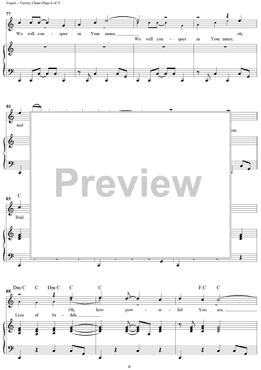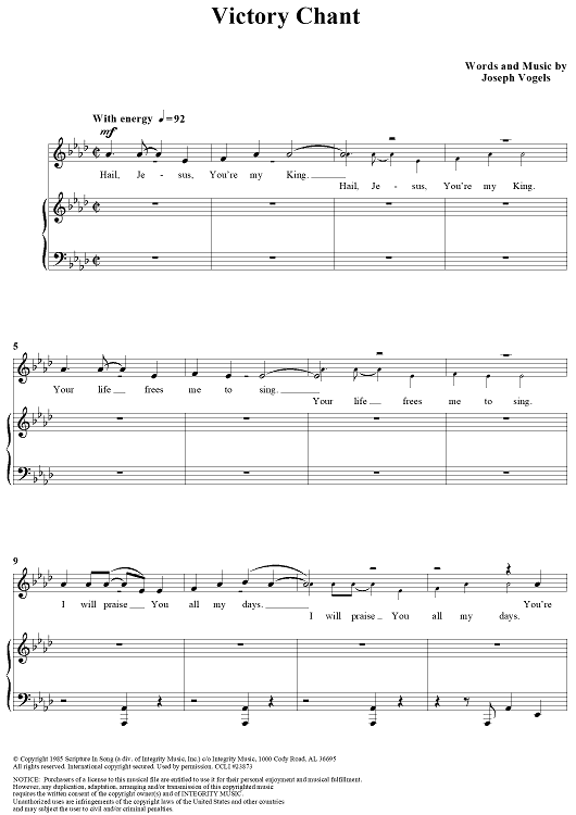 Digital Sheet Music for Victory Chant by Joseph Vogels scored for Piano/Vocal; id:307733