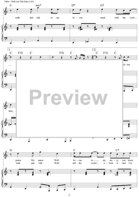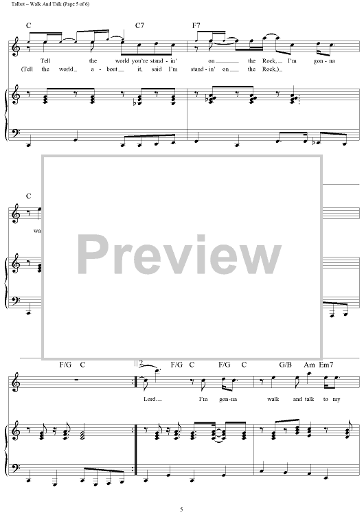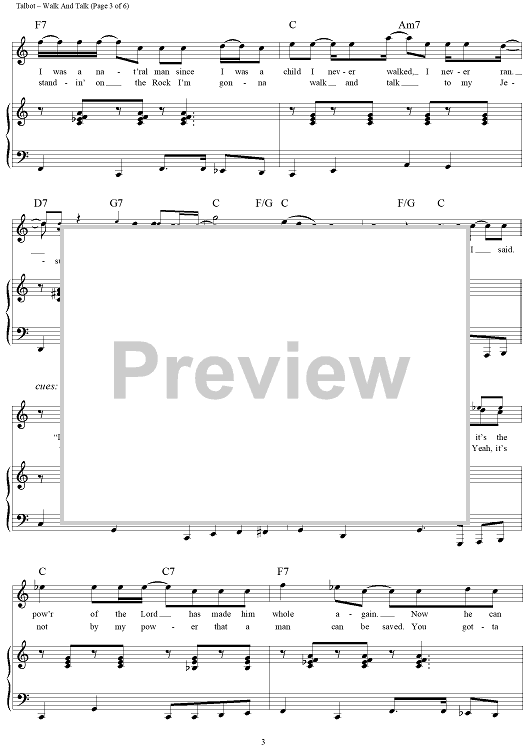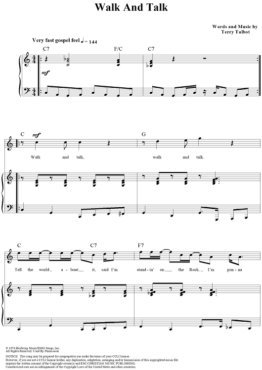 Digital Sheet Music for Walk and Talk by Keith Green, Terry Talbot scored for Piano/Vocal/Chords; id:113941