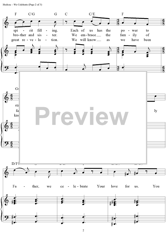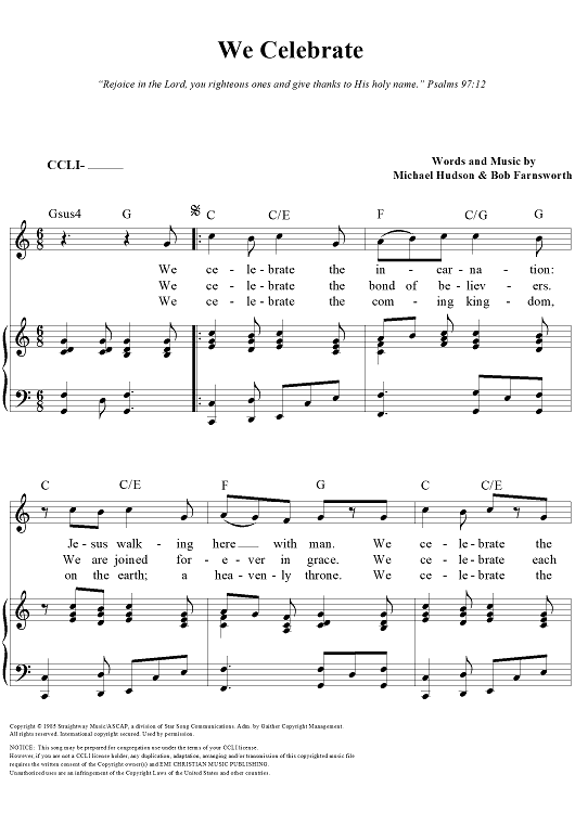 Digital Sheet Music for We Celebrate by Michael Hudson, Bob Farnsworth scored for Piano/Vocal/Chords; id:109778