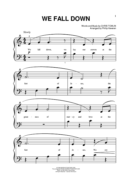 Digital Sheet Music for We Fall Down by Chris Tomlin, Phillip Keveren, Passion Band scored for Piano; id:381388