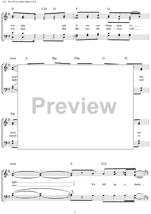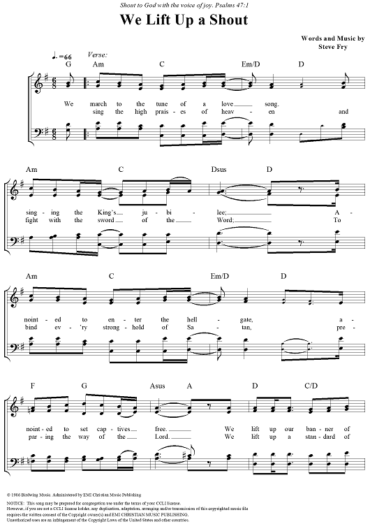 Digital Sheet Music for We Lift Up a Shout by Steve Fry scored for Piano/Vocal/Chords; id:113298