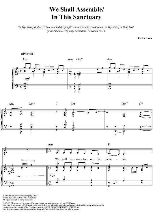 Digital Sheet Music for We Shall Assemble/In This Sanctuary by Twila Paris scored for Piano/Vocal/Chords; id:111532