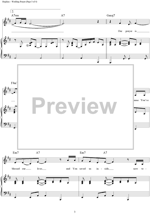 Digital Sheet Music for Wedding Prayer by Mary Hopkins scored for Piano/Vocal/Chords; id:119530