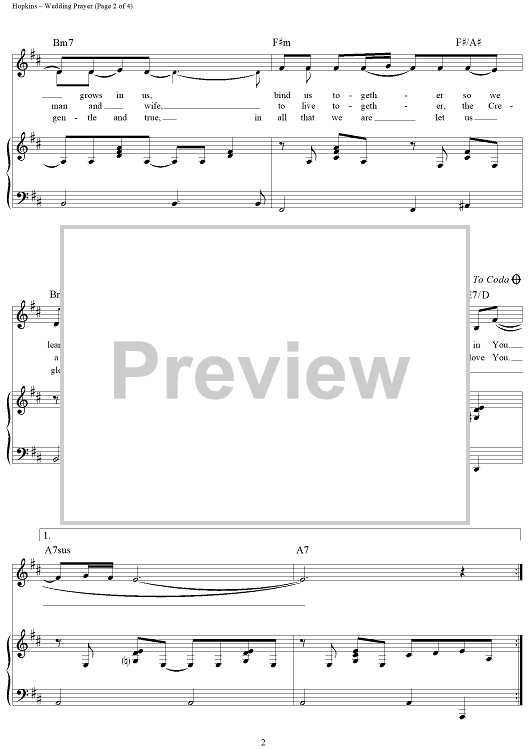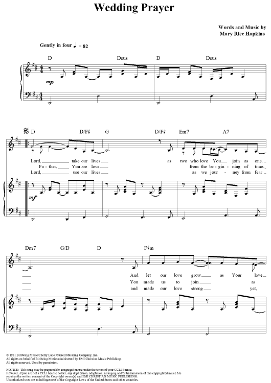 "Wedding Prayer" Sheet Music by Mary Rice Hopkins