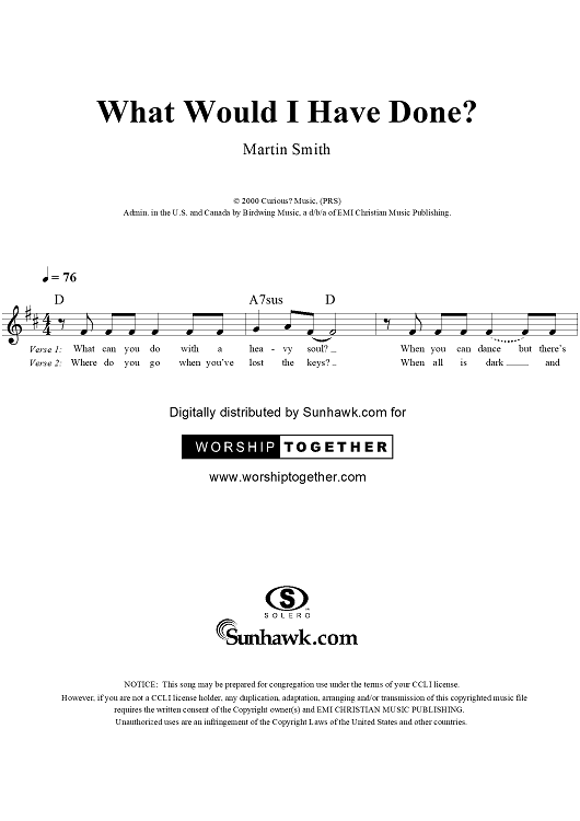 Digital Sheet Music for What Would I Have Done? by Martin Smith, Delirious? scored for Lead Sheet; id:241240