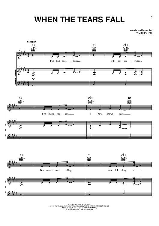 Digital Sheet Music for When The Tears Fall by Tim Hughes, Newsboys scored for Piano/Vocal/Chords; id:382034