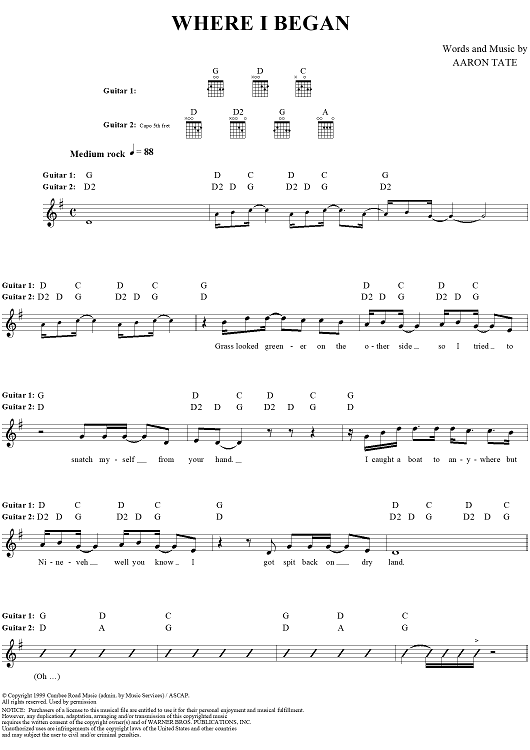 Digital Sheet Music for Where I Began by Caedmon's Call, Aaron Tate scored for Lead Sheet; id:259396