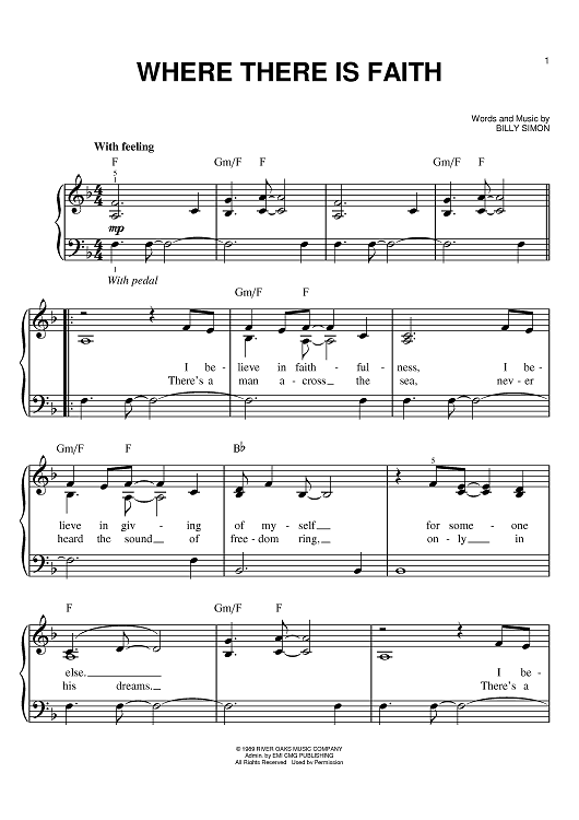 Digital Sheet Music for Where There Is Faith by Billy Simon, 4Him scored for Easy Piano; id:383459