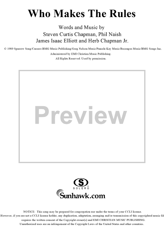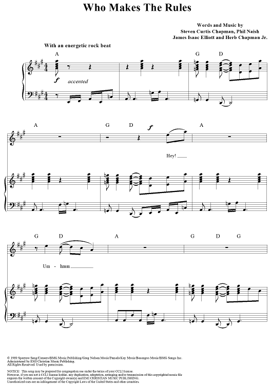 Digital Sheet Music for Who Makes the Rules by Steven Curtis Chapman, Phil Naish, Herb Chapman, Jr., James Isaac Elliot scored for Piano/Vocal/Chords; id:119300