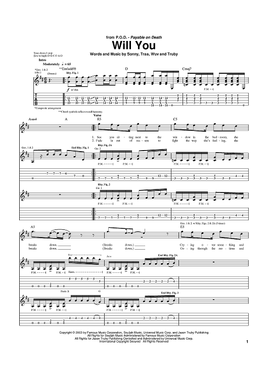 Digital Sheet Music for Will You by Payable On Death scored for Guitar Tab; id:373982