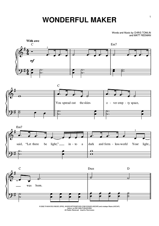 Digital Sheet Music for Wonderful Maker by Matt Redman, Chris Tomlin, Jeremy Camp scored for Easy Piano; id:383367