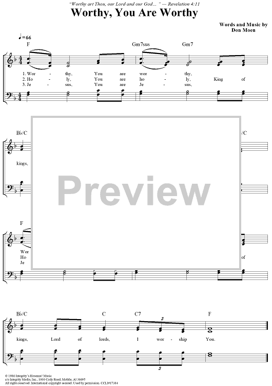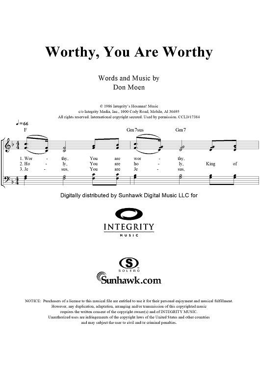 "Worthy, You Are Worthy" Sheet Music by Don Moen