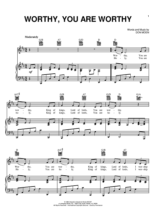 Digital Sheet Music for Worthy, You Are Worthy by Don Moen scored for Piano/Vocal/Chords; id:370994