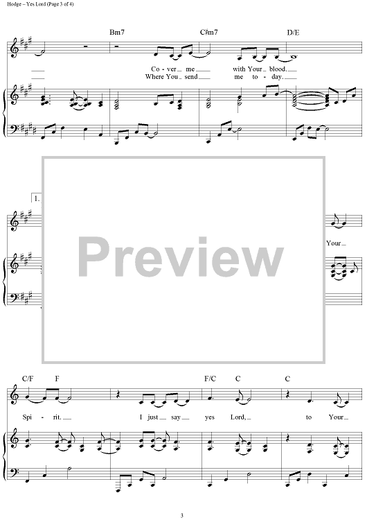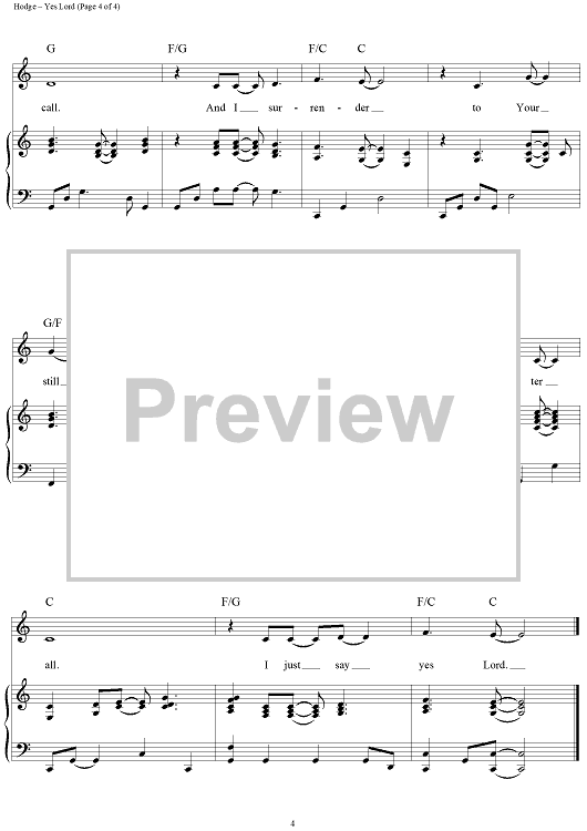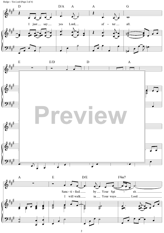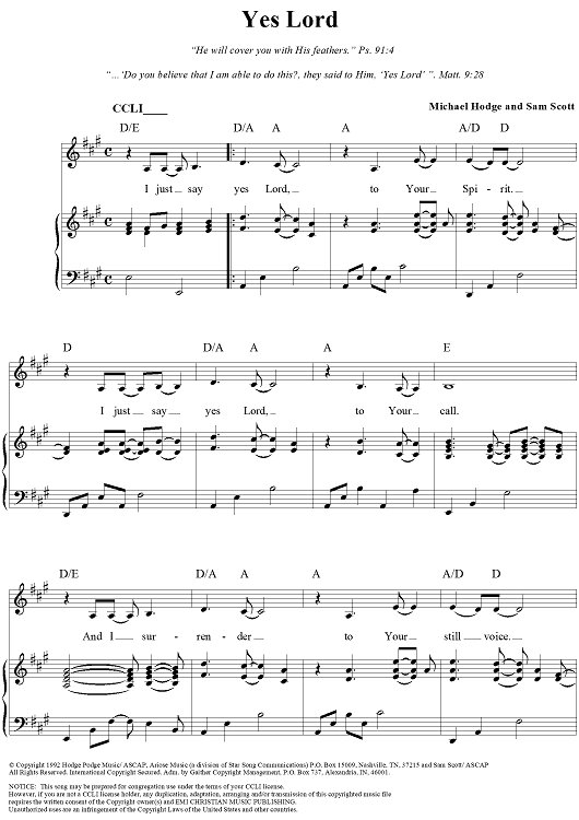 Digital Sheet Music for Yes Lord by Michael Hodge, Sam Scott scored for Piano/Vocal/Chords; id:111711
