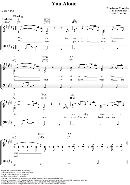 Digital Sheet Music for You Alone by Jack Parker, David Crowder scored for Piano/Vocal/Chords; id:113730