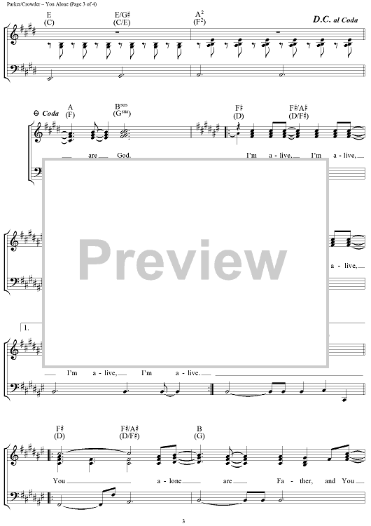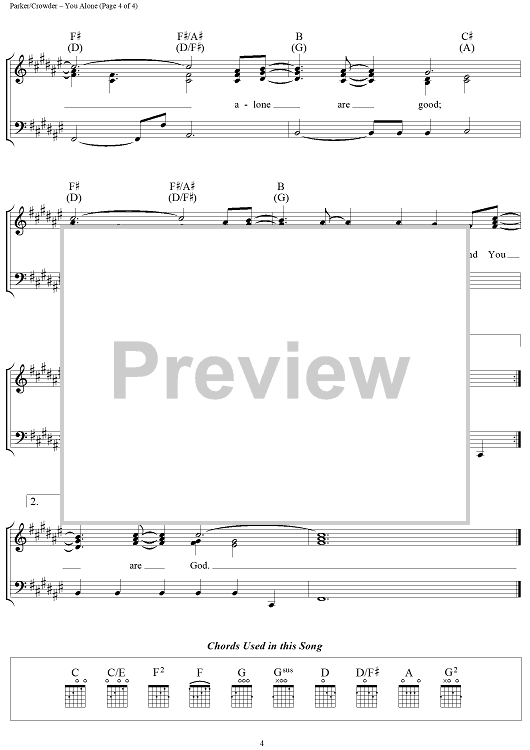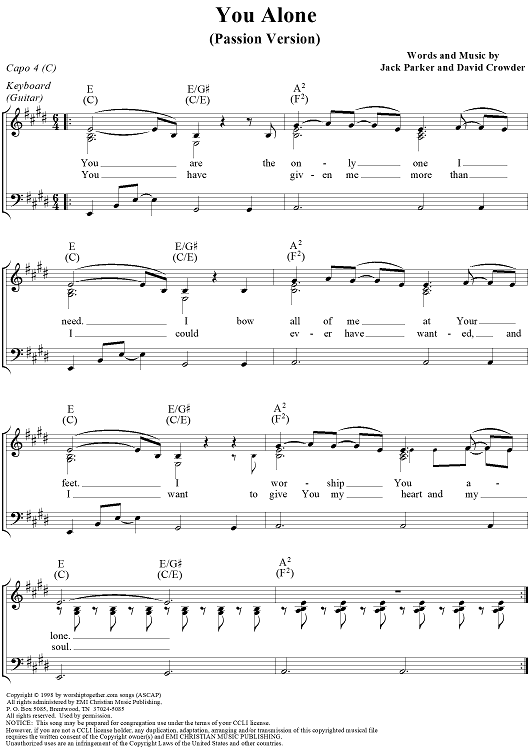 Digital Sheet Music for You Alone (Passion Version) by Jack Parker, David Crowder scored for Piano/Vocal/Chords; id:108969