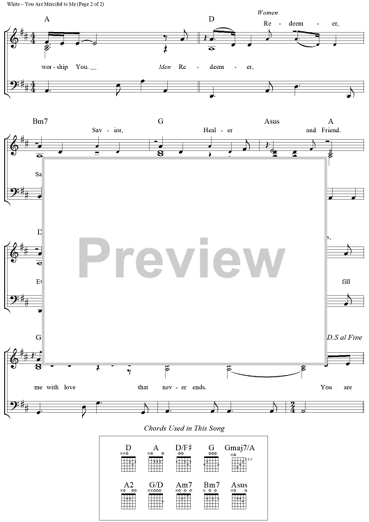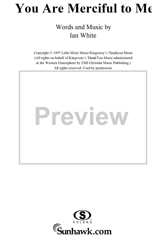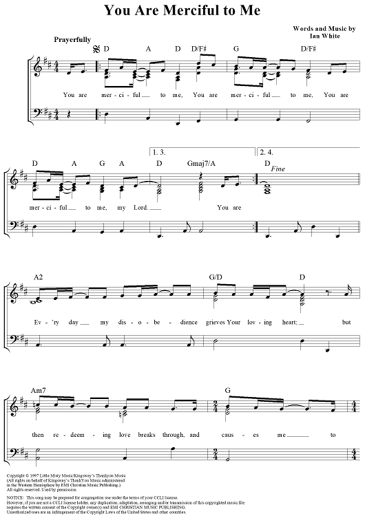 Digital Sheet Music for You Are Merciful To Me by Ian White scored for Piano/Vocal/Chords; id:119978