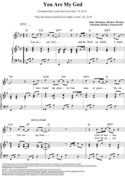 Digital Sheet Music for You Are My God by Dwight Liles, Bob Farnsworth, Jose Melendez, Tom Hemby, Jeff Borders, Chris Christian scored for Piano/Vocal/Chords; id:111342