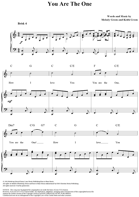 Digital Sheet Music for You Are The One by Keith Green, Melody Green scored for Piano/Vocal/Chords; id:119096