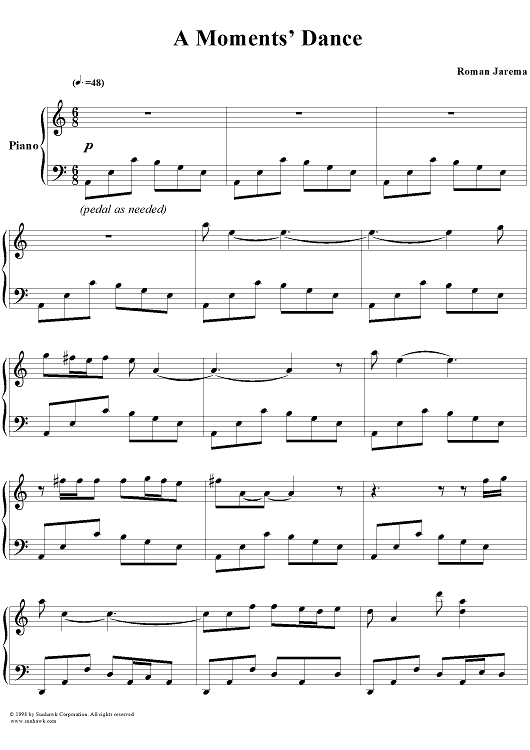 Digital Sheet Music for A Moment's Dance by Roman Jarema scored for Piano Solo; id:111173