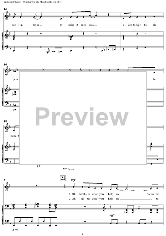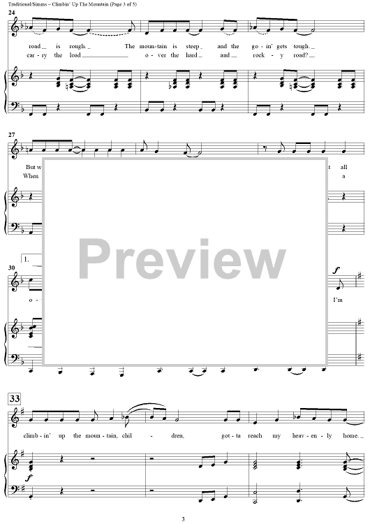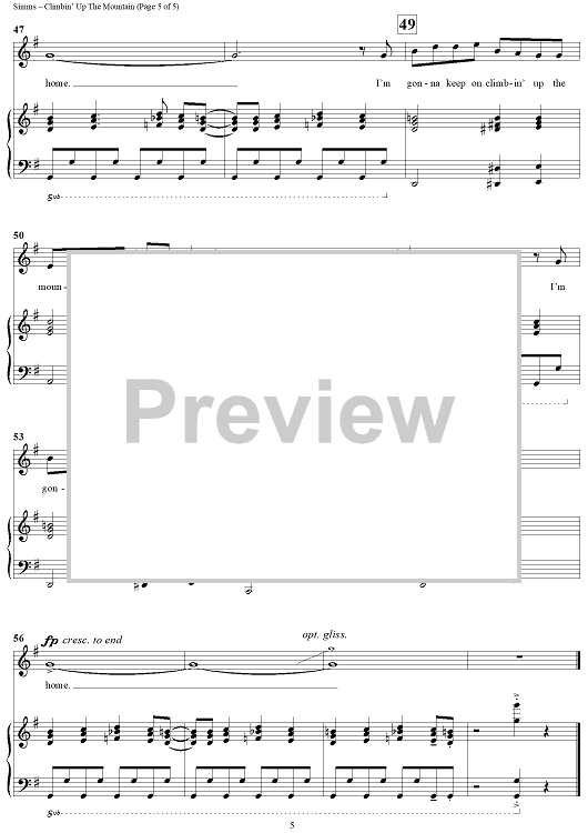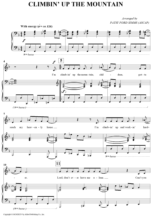 Digital Sheet Music for Climbin' Up The Mountain by Spiritual, Jay Althouse, Patsy Ford Simms scored for Piano/Vocal; id:440964