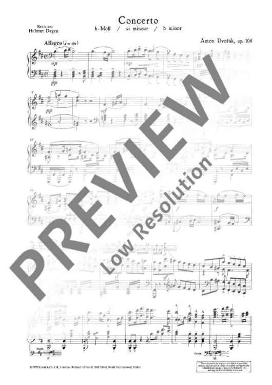 "Concerto B Minor - Piano Score and Solo Part" Sheet Music by Antonín Dvorák