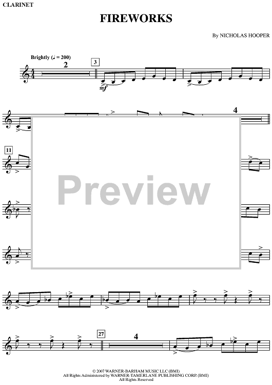 Digital Sheet Music for Fireworks by Nicholas Hooper scored for Clarinet/Piano; id:498085