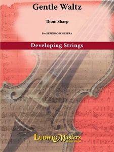 Gentle Waltz by Thom Sharp is a grade 2 string orchestra work in C major. There is lots of independence between sections and a fair amount of chromatics, as well as some divisi in the second violins. Some sections have pizzicato work, and the second violins have a couple of short sections of louree? bowing. There is some wide arpeggiated work for the cellos that may require extra attention and, of course, smooth flowing legato phrasing is a must.
