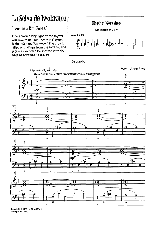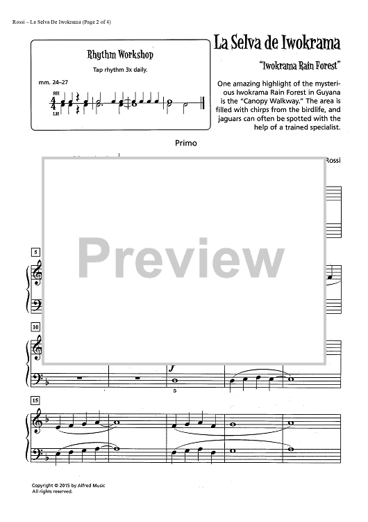 Digital Sheet Music for La Selva de Iwokrama ("Iwokrama Rain Forest") by Wynn-Anne Rossi scored for 1 Piano, 4 Hands; id:449410