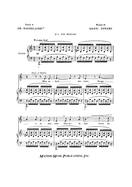 Digital Sheet Music for L'invitation au Voyage by Charles Baudelaire, Henri Duparc scored for Piano/Vocal; id:444580