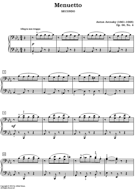 Digital Sheet Music for Menuetto, Op. 66, No. 4 by Anton Arensky scored for 1 Piano, 4 Hands; id:503060