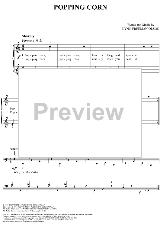 "Popping Corn" Sheet Music by Lynn Freeman Olson