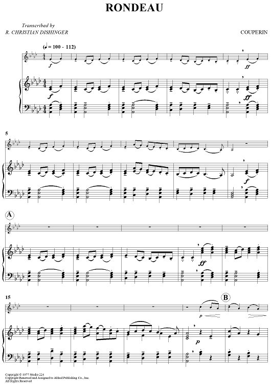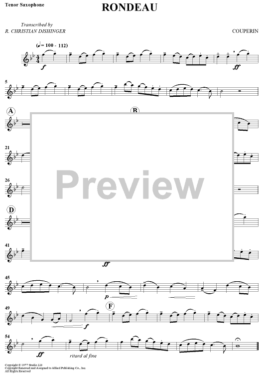 Digital Sheet Music for Rondeau by Francois Couperin, R. Christian Dishinger scored for Bb Tenor Sax/Piano; id:434466
