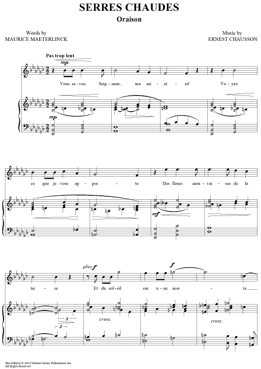 Digital Sheet Music for Serres Chaudes - Oraison by Ernest Chausson, Maurice Maeterlinck scored for Piano/Vocal; id:444452