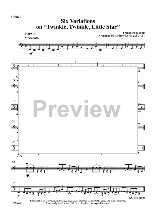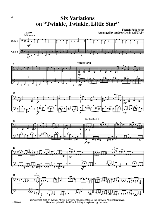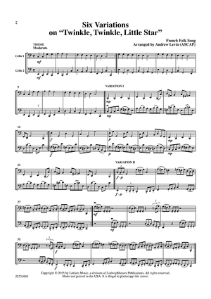 "Six Variations on "Twinkle, Twinkle, Little Star" for 2 cellos" Sheet Music by French Folk Song