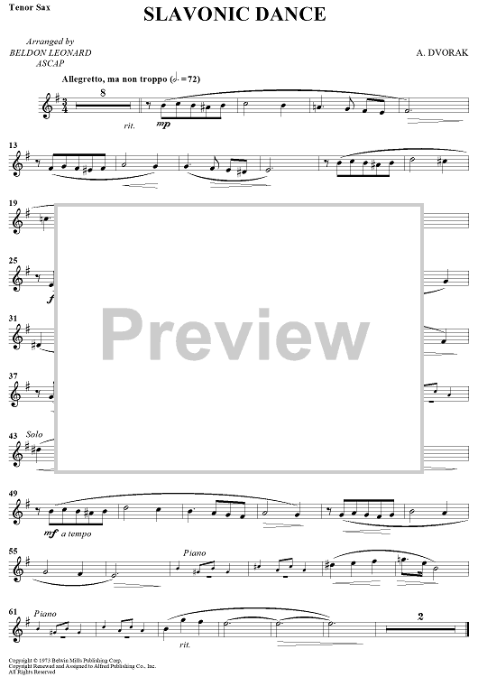 Digital Sheet Music for Slavonic Dance by Antonín Dvorák, Beldon Leonard scored for Bb Tenor Sax/Piano; id:438515