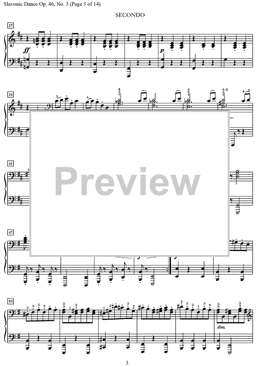 "Slavonic Dances - No. 3" Sheet Music by Antonín Dvorák