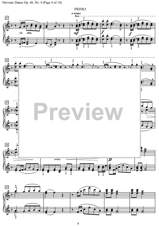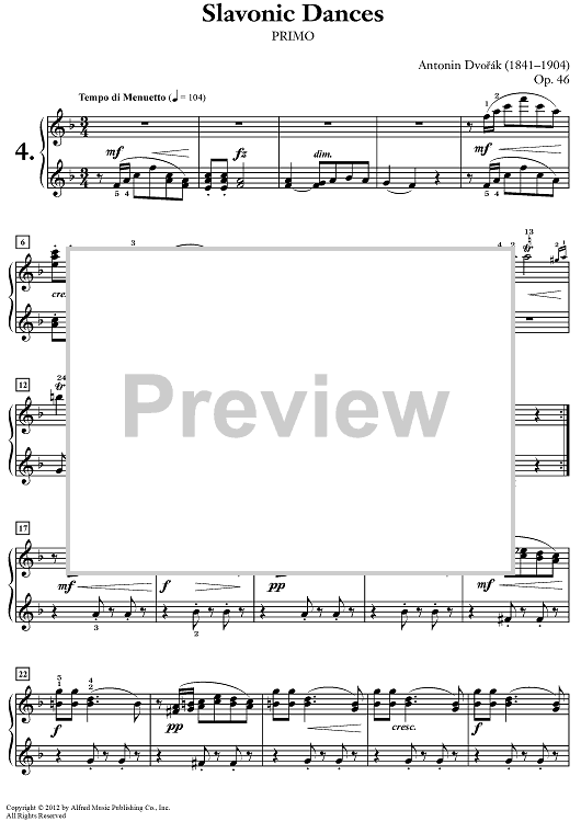 "Slavonic Dances - No. 4" Sheet Music by Antonín Dvorák