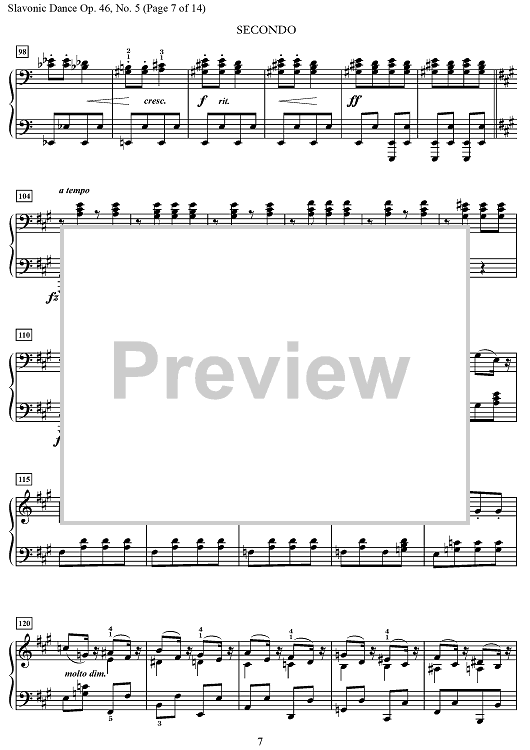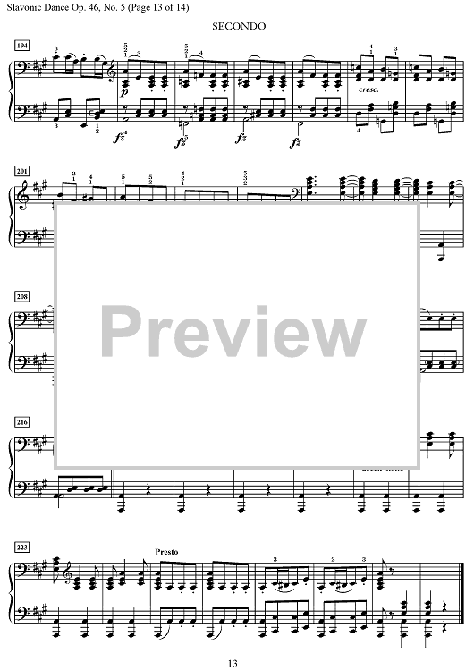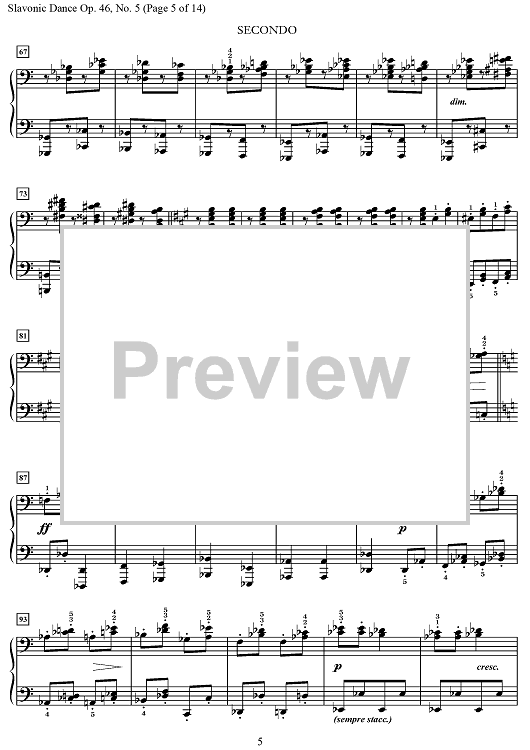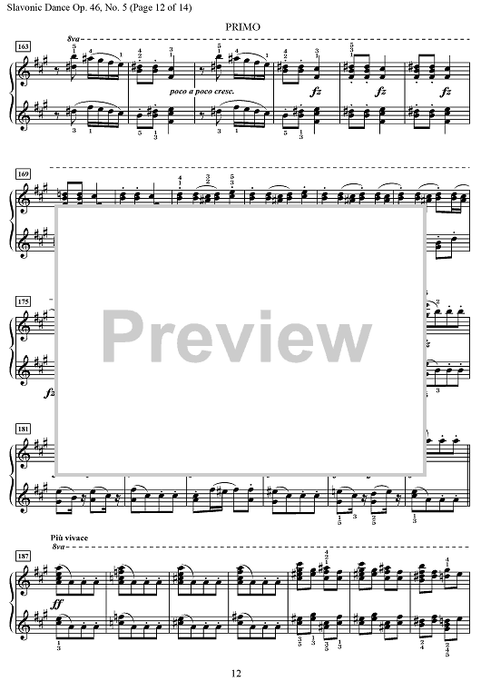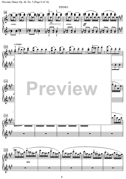 "Slavonic Dances - No. 5" Sheet Music by Antonín Dvorák