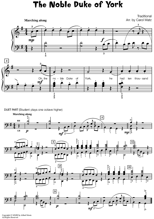 Digital Sheet Music for The Noble Duke of York by Carol Matz, Traditional scored for Piano; id:497460