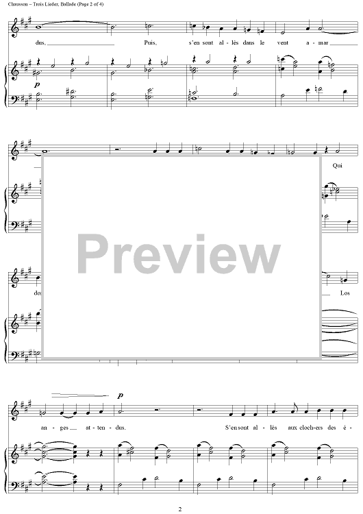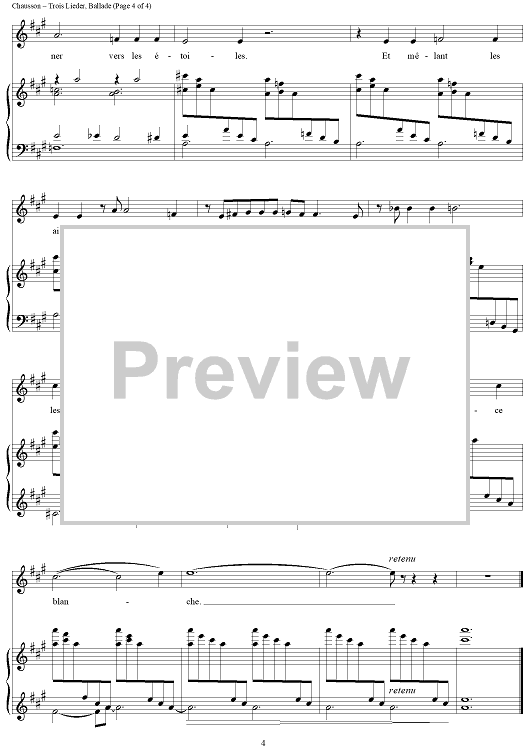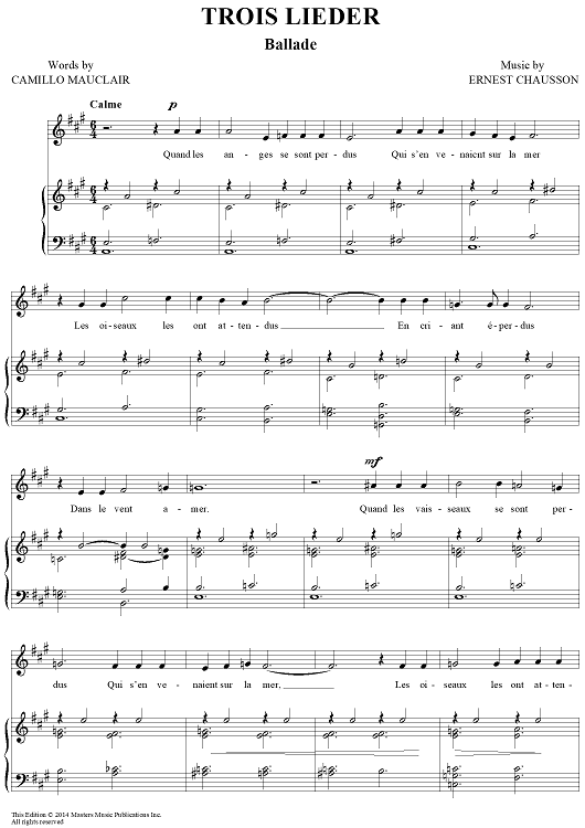 Digital Sheet Music for Trois Lieder, Ballade - Op. 27 by Ernest Chausson, Camille Mauclair scored for Piano/Vocal; id:444323
