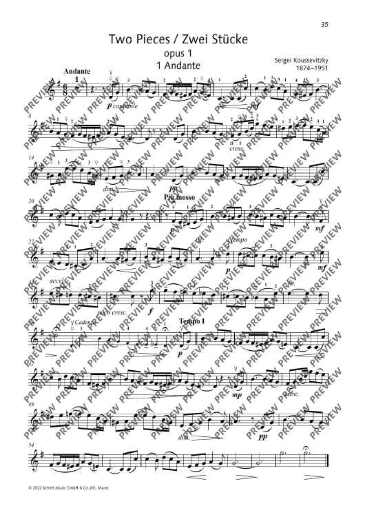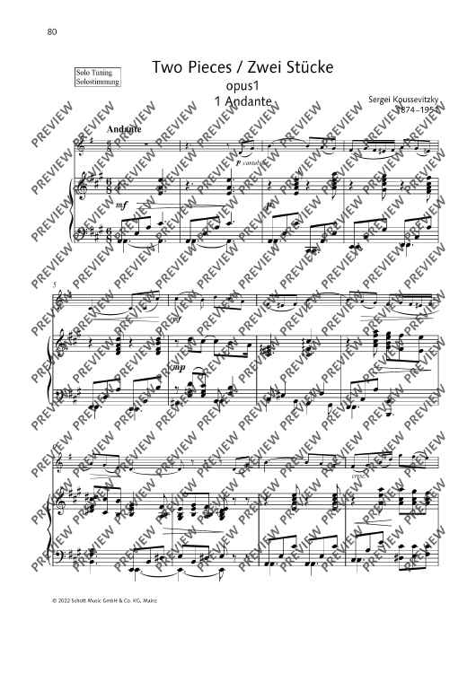 "Two Pieces" Sheet Music by Sergej Koussevitzky