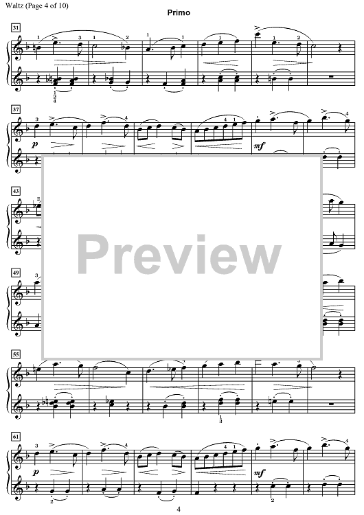 Digital Sheet Music for Waltz, Op. 34, No. 4 (from Six Children's Pieces) by Anton Arensky scored for 1 Piano, 4 Hands; id:501798