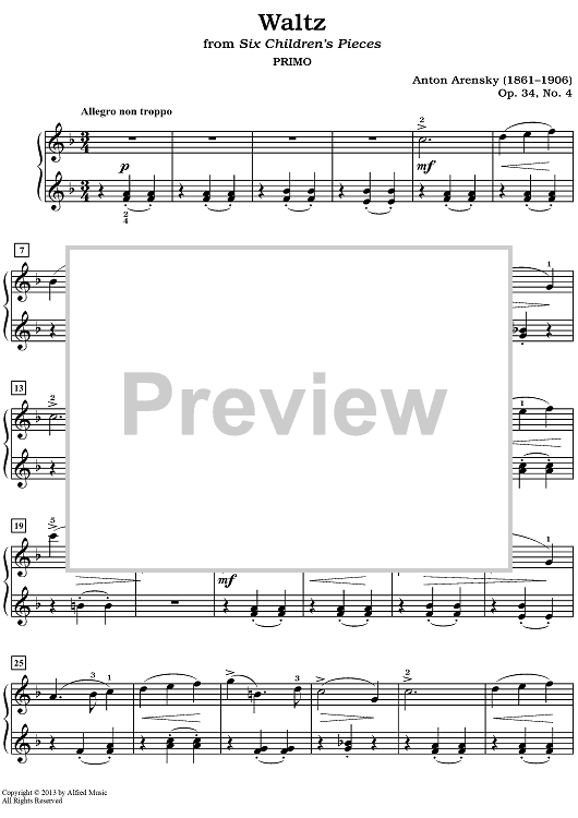 "Waltz, Op. 34, No. 4 (from Six Children's Pieces)" Sheet Music by Anton Arensky