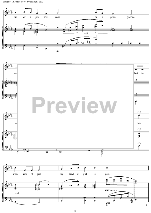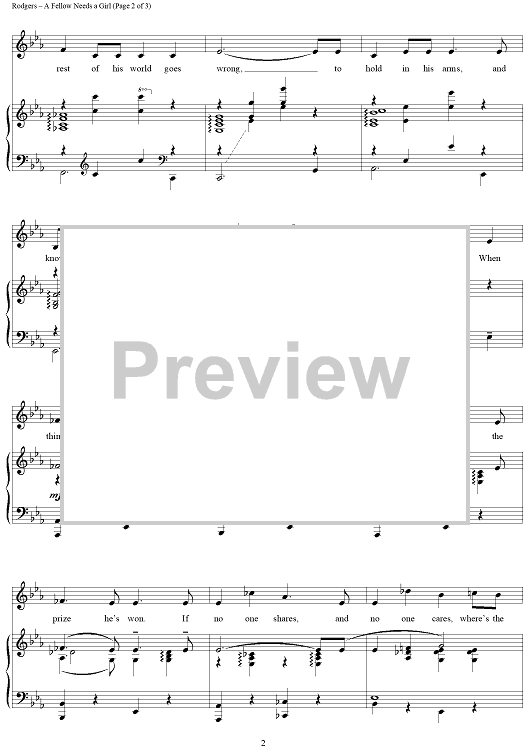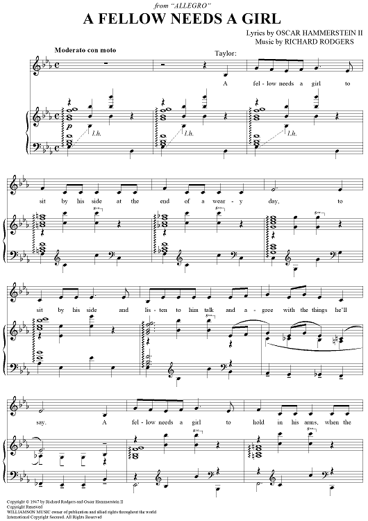 Digital Sheet Music for A Fellow Needs a Girl by Richard Rodgers, Oscar Hammerstein II scored for Piano/Vocal; id:403312