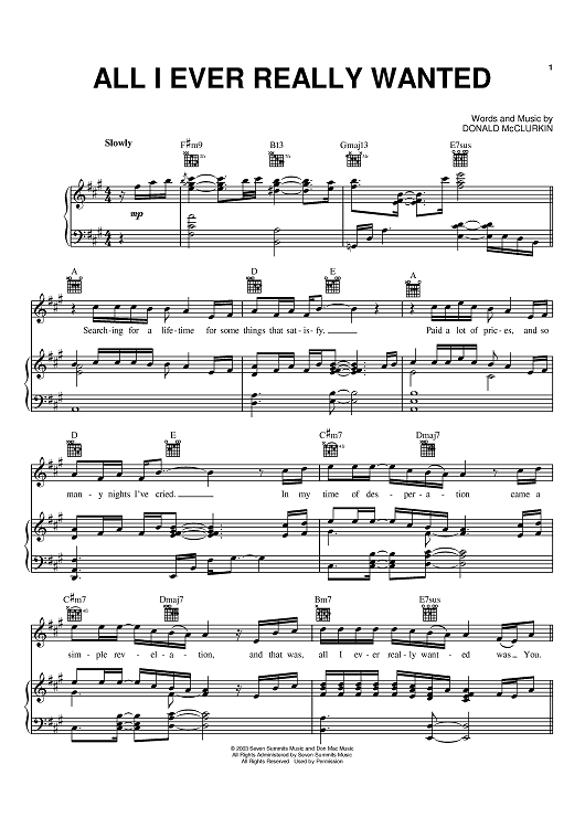 Digital Sheet Music for All I Ever Really Wanted by Donnie McClurkin scored for Piano/Vocal/Chords; id:372969