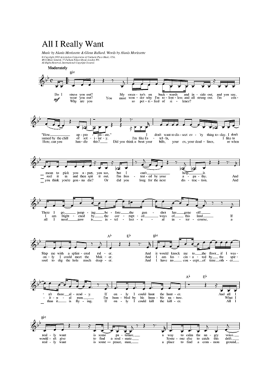 Digital Sheet Music for All I Really Want by Alanis Morissette scored for Lead Sheet; id:379031